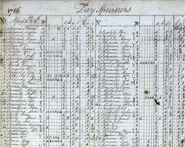 The wage books are some of the earliest surviving records for any of the Richard Arkwright Company mills, and demonstrate the differentiation between types of workers, reflected in a wide variation in rates of pay. The books cover the period 1786 to 1811, with significant gaps. It may be that some volumes remained at the mill after the sale in 1860, and were destroyed by the fire of 1868.